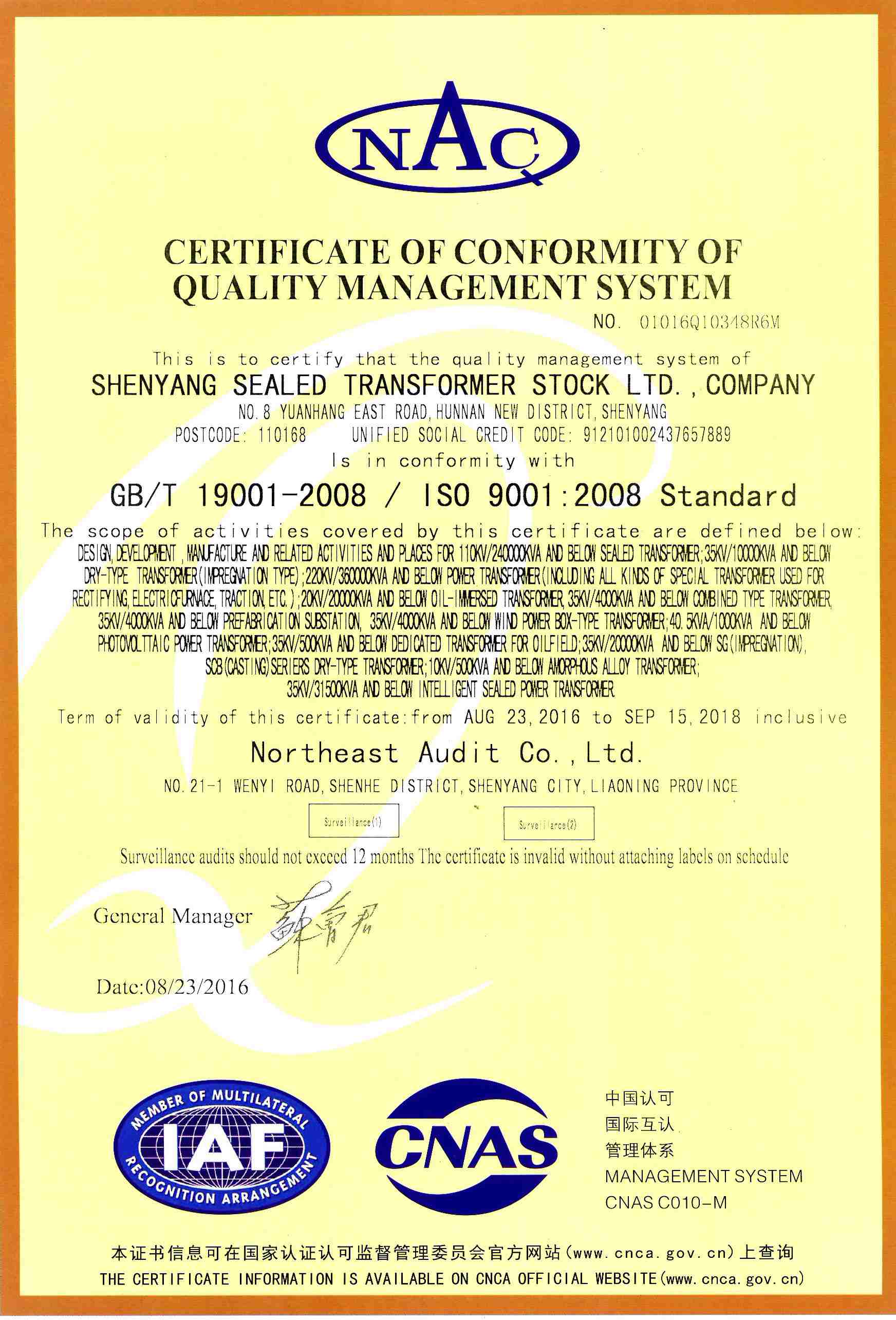 ISO9001 QUALITY CERTIFICATE