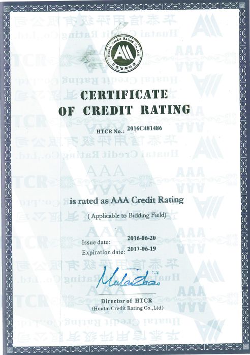 CERTIFICATE OF CREDIT RATING
